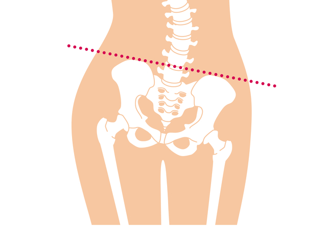 1. 骨盤が後ろに傾き、背骨のS字カーブが崩れる