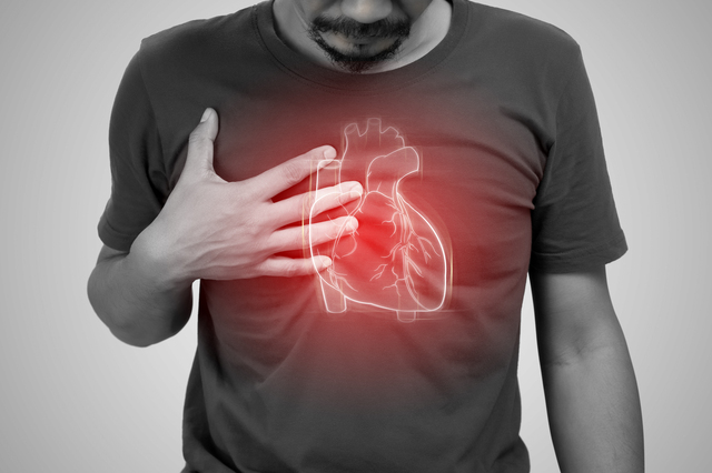 息苦しさや冷や汗、締め付けられるような胸の痛みを伴う場合、心筋梗塞や狭心症など、心臓の病気が疑われます。痛みは背中だけでなく、左の肩や腕、あごにまで広がる(放散痛)ことがあります。命に関わる緊急性の高い状態です。