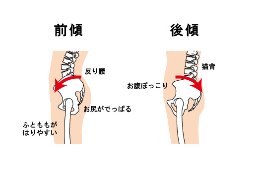 骨盤が前に傾き、腰のカーブ(腰椎の前弯)が過度に強くなった状態です。腰が反りすぎることで腰痛や姿勢の乱れを引き起こすことがあります。