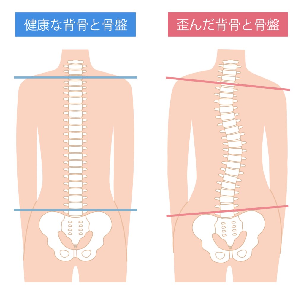 日常生活のクセや筋肉のアンバランスによって、骨盤や背骨の位置がズレた状態のこと。見た目の姿勢だけでなく、痛み・疲労感・内臓機能の低下など、体にさまざまな不調を引き起こします。
