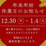 年末年始休業日のお知らせ 12/30~01/04